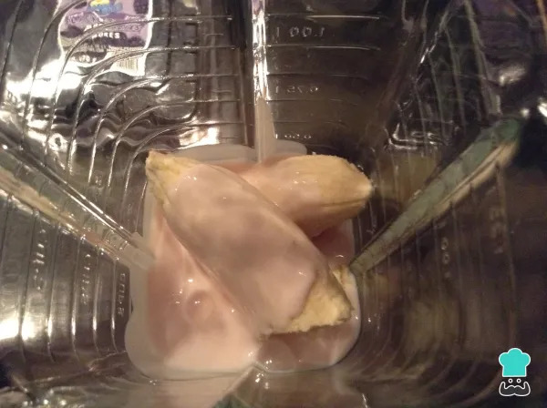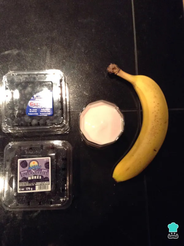 - En el vaso de la licuadora adicionar el banano y el yogur frutos rojos y licuar.